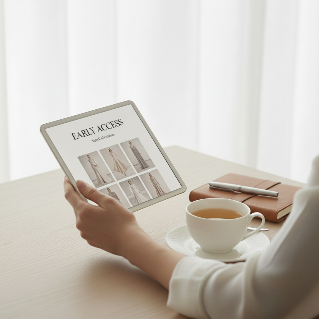 Be the first to explore each new collection with 48-hour early access. A gentle head start on pieces made for your season, your pace, your story.