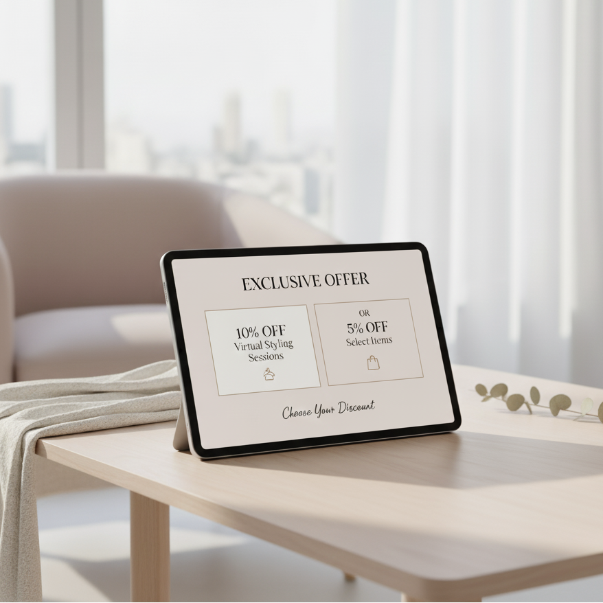 Enjoy a one-time welcome gift: 10% off a virtual styling session or 5% off select pieces. Yours to use within 30 days of joining Lily Lounge.